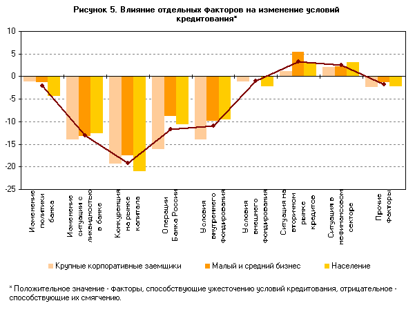 До некоторой степени фактором ужесточения условий банковского кредитования оставалось изменение ситуации на вторичном рынке кредитов (операции по секьюритизации, передаче кредитов коллекторским агентствам и т. д.).