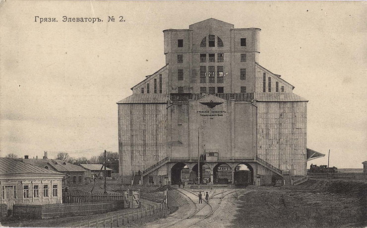 Элеватор Государственного банка при железнодорожной станции Грязи. Почтовая карточка. 1910-е годы