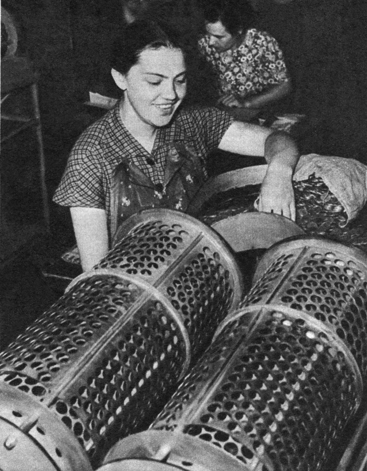 Работница Госбанка СССР у монетно-сортировальной машины. Фото. 1957 год