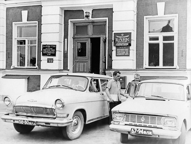 Инкассаторы Владимирской областной конторы Госбанка выезжают на маршрут. Фото. 1971 год
