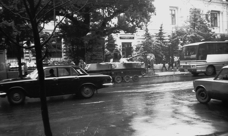 Москва, 19 августа 1991 года. Бронетехника перед зданием Госбанка СССР