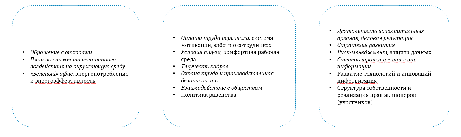 2 Курсивом обозначены факторы, которые принимаются во внимание рейтинговыми агентствами в рамках методологии присвоения ESG-рейтингов.