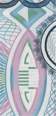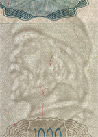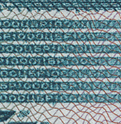 Банкнота изготовлена на белой высококачественной хлопковой бумаге. В бумагу внедрены волокна светло-зеленого и красного цвета, волокна с чередующимися участками красного и желтого цветов, а также вертикально расположенная защитная нить с повторяющимся текстом, видимая на просвет. Бумага имеет локальные водяные знаки, размещенные слева и справа на купонных полях.