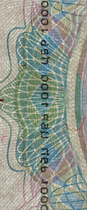 Банкнота имеет два серийных номера, расположенных на лицевой стороне банкноты и состоящих из двухбуквенного обозначения серии и семи цифр.