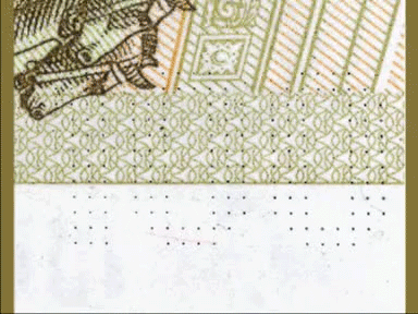 прямым углом зрения поле выглядит однотонным. При наклоне банкноты на поле