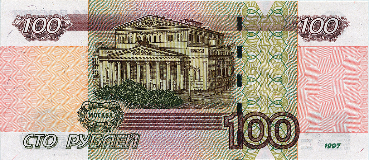 Банкнота Банка России образца 1997 года номиналом 100 рублей модификации 2004 года