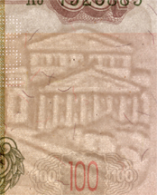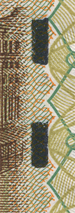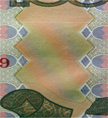 поверхность банкноты с оборотной стороны. В проходящем свете (на просвет)