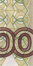 оборотной стороне можно различить микротекст. В верхней части банкнот находится