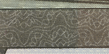 линий, расположенные на купонных полях оборотной стороны банкноты, невооруженным