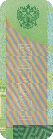 На лицевой стороне банкноты слева вверху расположен герб Российской Федерации.
