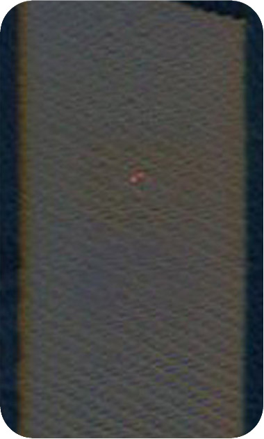 В бумагу внедрены защитные волокна двух типов — цветные с чередующимися участками красного и синего цветов и волокна серого цвета.