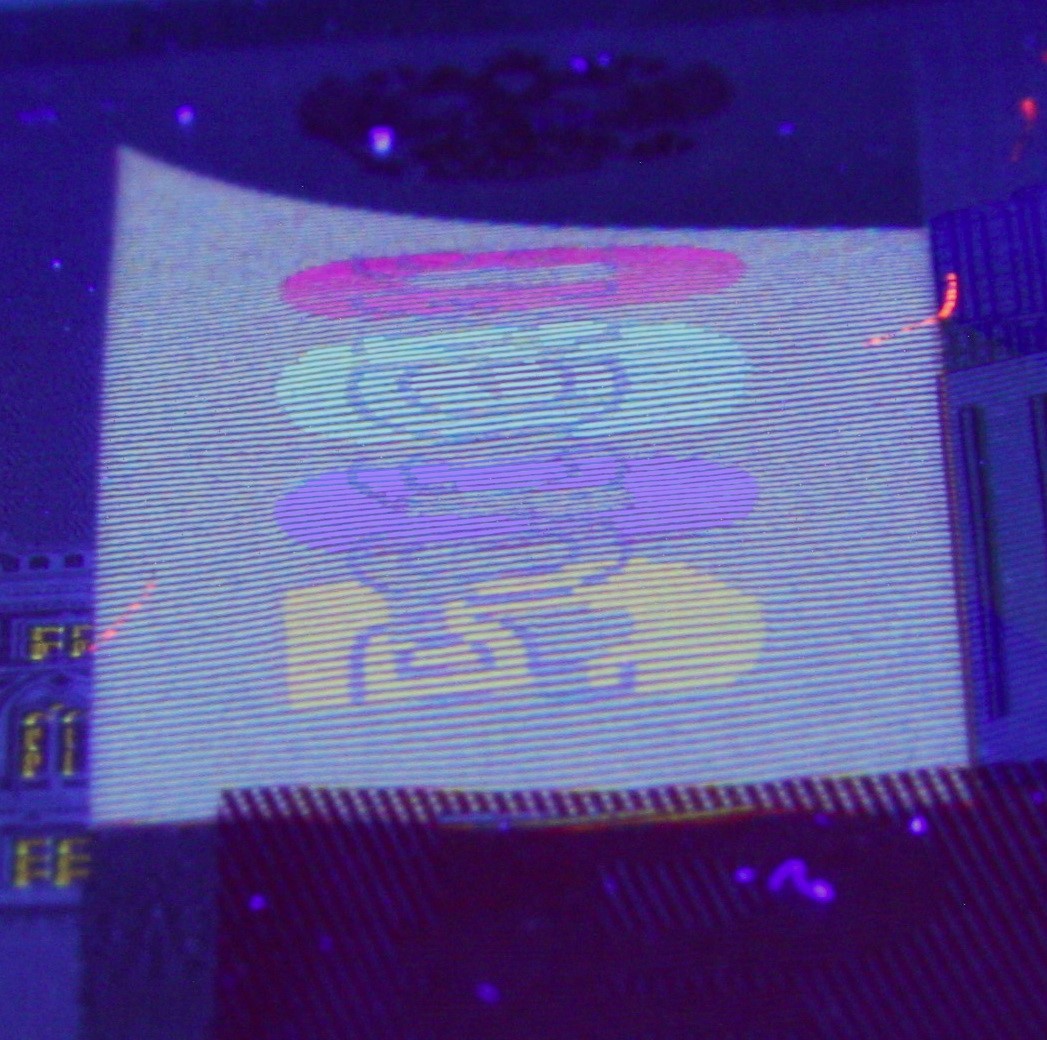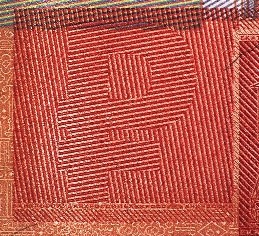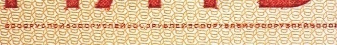 В бумагу внедрены защитные волокна двух типов — цветные с чередующимися участками красного и синего цветов и волокна серого цвета.