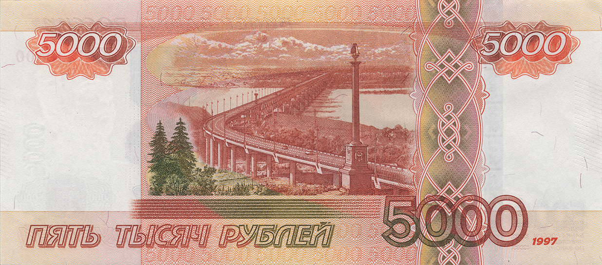 Банкнота Банка России образца 1997 года номиналом 5000 рублей модификации 2010 года