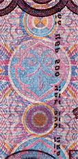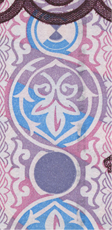 Банкнота изготовлена на высококачественной хлопковой бумаге светло-фиолетового оттенка. В бумагу внедрены волокна светло-зеленого, красного и фиолетового цветов, а также вертикально расположенная защитная нить с повторяющимся текстом, видимая на просвет. Бумага имеет локальные водяные знаки, размещенные слева и справа на купонных полях.