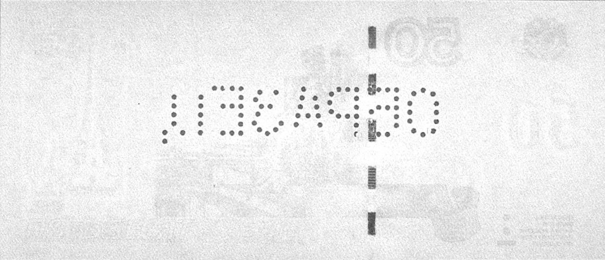 При рассматривании банкноты в проходящем свете (на просвет) фрагменты лицевой и оборотной сторон точно совмещаются, образую цельный рисунок, неокрашенные элементы заполняются цветом фрагментов противоположной стороны.