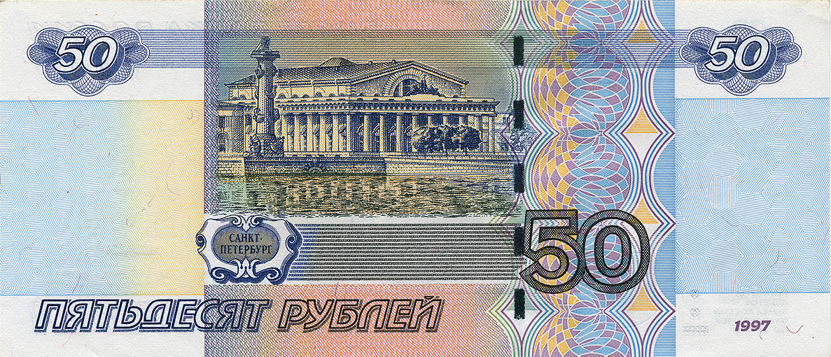 Банкнота Банка России образца 1997 года номиналом 50 рублей модификации 2004 года