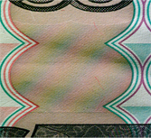 Рисунки из тонких линий, расположенные на купонных полях оборотной стороны банкноты, невооруженным глазом воспринимаются как ровное поле. При ксерокопировании возможно искажение рисунков или выявление несуществующих на оригинале светлых или темных рисунков (муар).