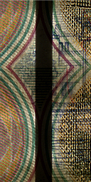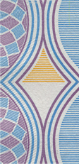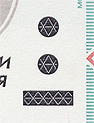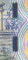 При рассматривании банкноты под прямым углом зрения поле выглядит однотонным. При наклоне банкноты на поле появляются многоцветные муаровые полосы.