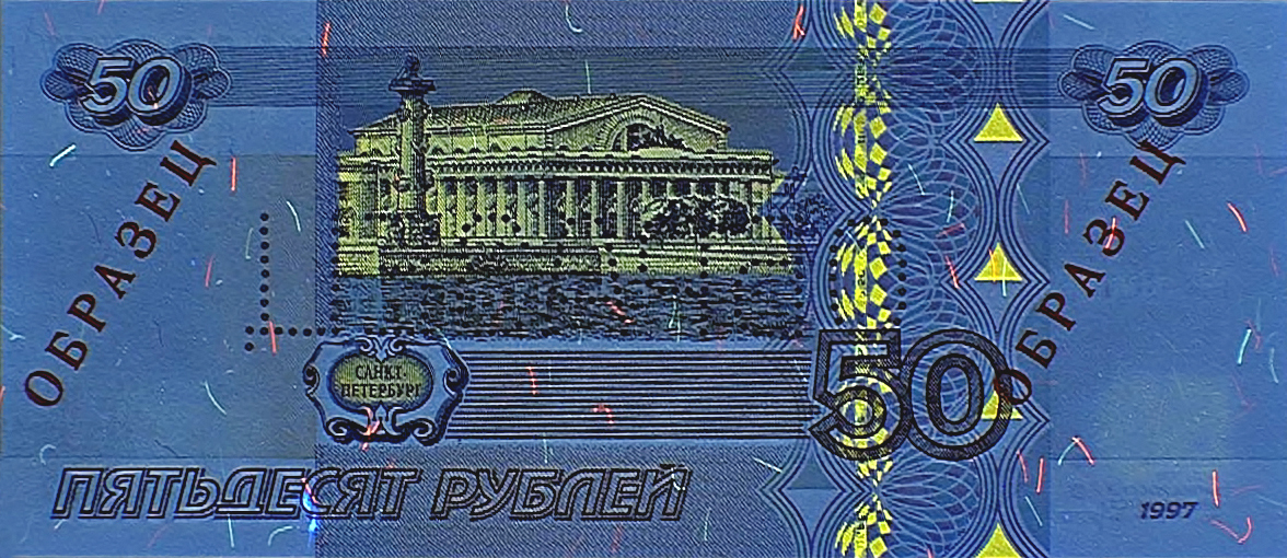 - изображения банкноты в ультрафиолетовом свете имеют отличия от банкноты образца 1997 года.