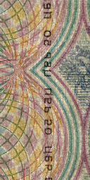 линий, расположенные на купонных полях оборотной стороны банкноты, невооруженным