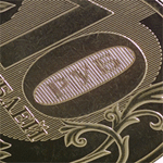 - внутри цифры «0» имеются «скрытые» изображения, видимые поочередно при изменении угла зрения: число «10» и надпись «руб».