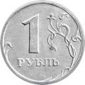 - в центре (ближе к правому краю) — обозначение номинала монеты: цифра 1, под ней — слово «КОПЕЙКА», расположенное горизонтально;