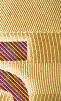 Под воздействием УФ-излучения наблюдаемые однотонные цифры номинала при наклоне банкноты приобретают разную окраску. При повороте банкноты на 180º окраска каждой цифры изменяется.