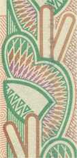 The note is printed with great accuracy so that irregular elements of the design on both sides of the banknote join up to form a complete picture when the banknote is viewed against the light.