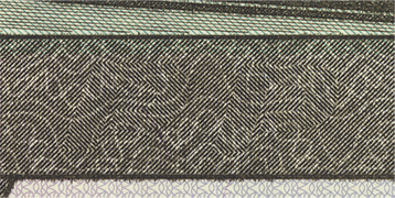 On the reverse side of the banknote there are images consisting of fine lines that look like an even background for a naked eye. Copying these images causes their possible distortion or appearance of inappropriate light or dark images (moire effect).