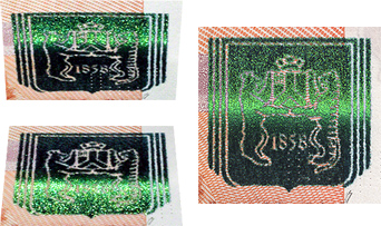- the coat-of-arms of the city of Khabarovsk is printed in optically variable magnetic ink (OVMI) with the effect of a moving bright glossy bar;
