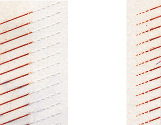 Fine line marks at the edges of unprinted areas on the front of the banknote have a raised relief with a tactile effect.