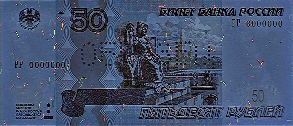 microtext in the form of eleven stripes with a repeated text “ЦБР50”.
