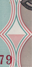 thread is a metallized plastic stripe embedded in the paper. Some parts of the security thread appear as