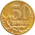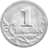 - in the center, a little to the right — the denomination of the coin: the figure 1, under it — the word „КОПЕЙКА” (KOPECK) written horizontal;