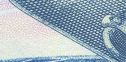 Security features checked with a magnifying glass (x8-x10)