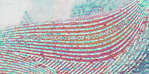 Positive microtext (the numeral “100” printed repeatedly in a line)