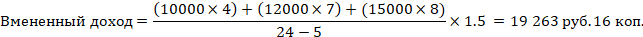 Заемщик обратился в кредитную организацию 15.06.2023 за получением ипотечного кредита (займа). В заявлении-анкете заемщик указал, что величина его доходов в месяц составляет 40 000 руб. В течение расчетного периода заемщик осуществлял платежи по иным кредитам (займам), информация о которых содержится в Кредитных отчетах. При этом в течение 8 месяцев, непосредственно предшествующих месяцу расчета ПДН, у заемщика отсутствовала кредитная активность. В рамках расчетного периода имелись периоды, в которых у заемщика отсутствовала кредитная активность, часть из которых непосредственно не предшествовала месяцу расчета ПДН, 2 месяца предшествовали месяцу расчета ПДН. Расчет Вмененного дохода в указанном примере должен быть произведен следующим образом.
